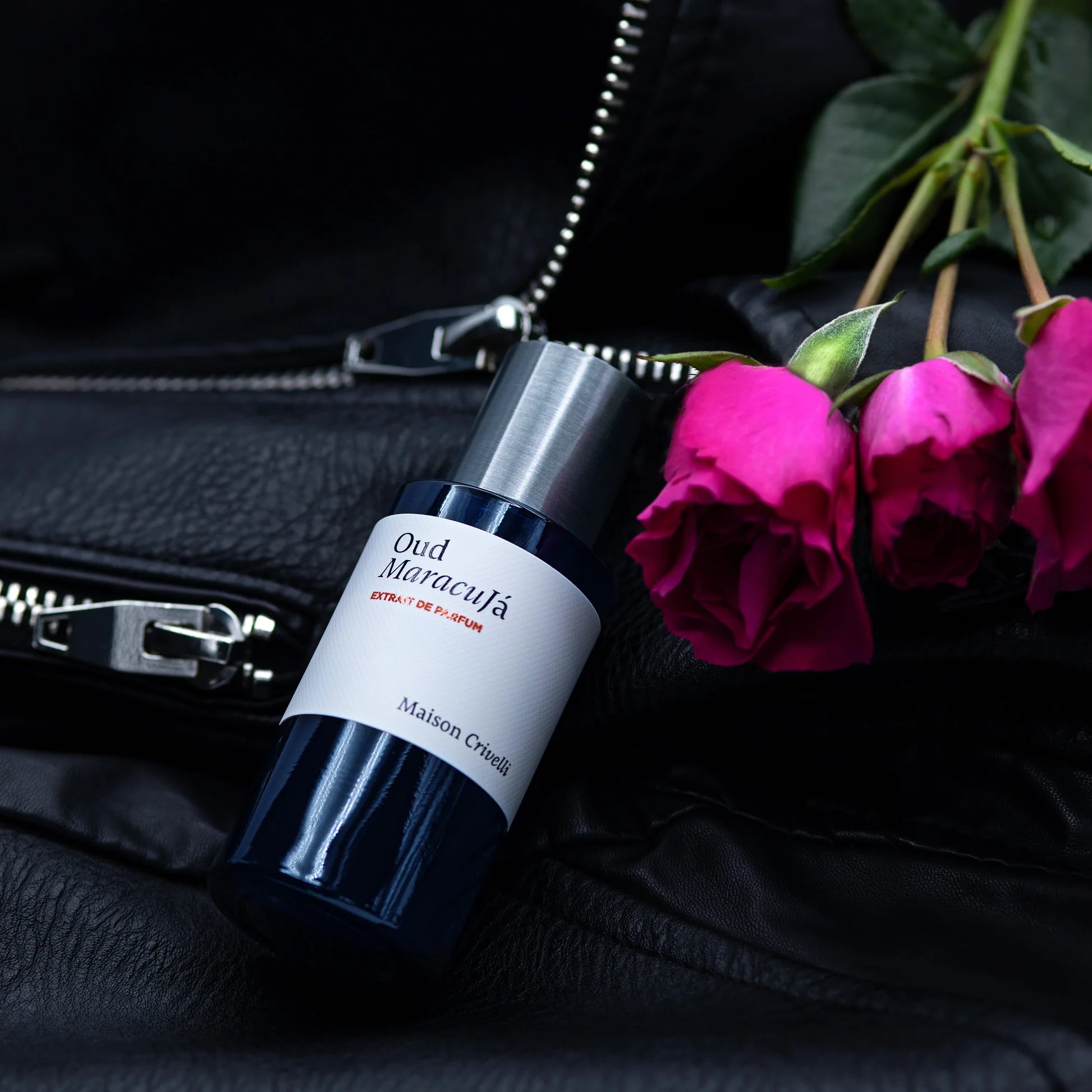 Oud Maracujá is an intensely original and luxurious oud fragrance that blends exotic passion fruit (maracujá) with rich Cambodian oud, creating a daring contrast of tropical brightness and deep resinous wood. This extrait-level fragrance is bold and long-lasting, designed for those who enjoy complex, vibrant oud compositions with a fruity twist.